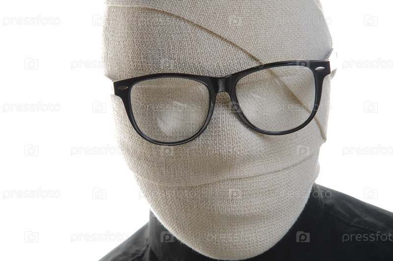 Человек-невидимка в очках на белом фоне