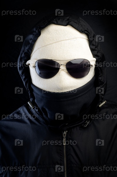 Человек-невидимка в очках на черном фоне