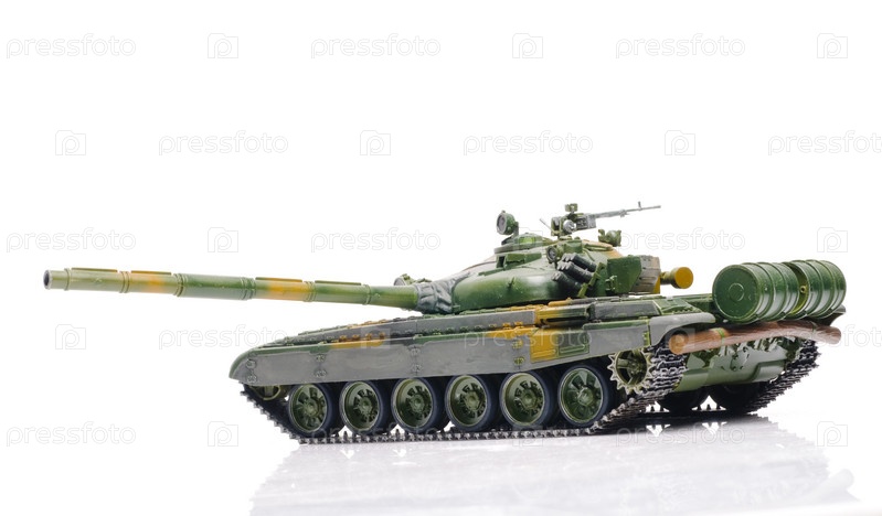 Модель российского танка на белом фоне