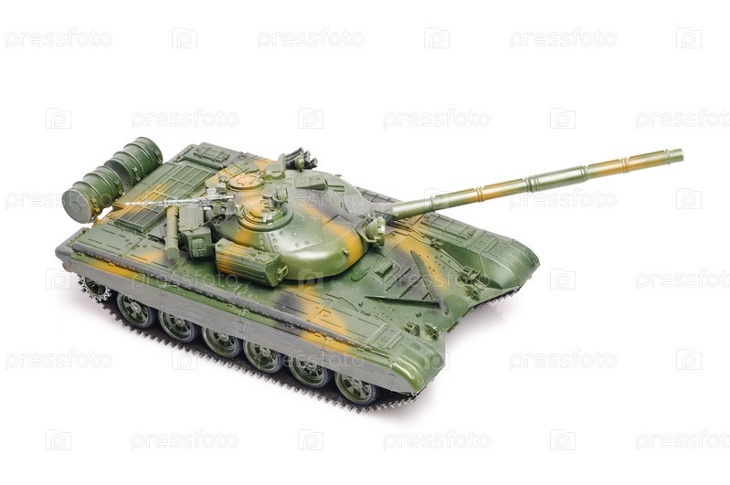 Модель российского танка на белом фоне