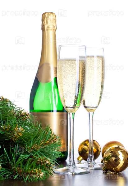 Два полных бокала шампанского на белом фоне