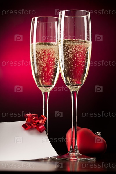 Два полных бокала шампанского на пурпурном фоне
