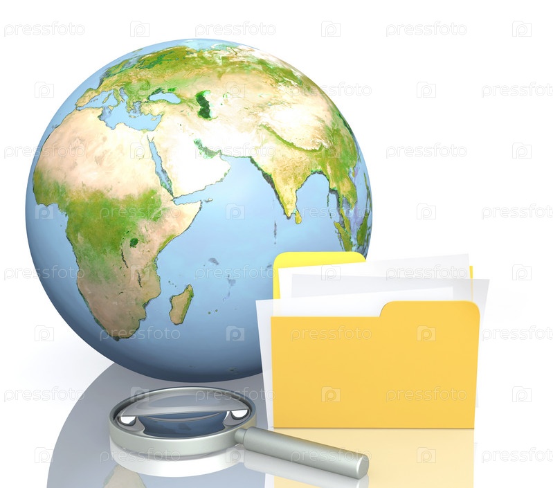 Земной шар, лупа и папка с бумагами