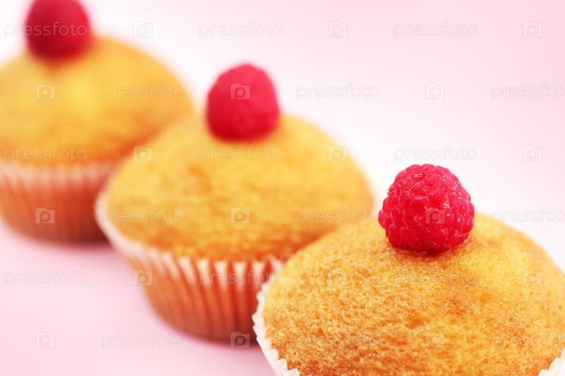 Кексы с малиной на розовом фоне