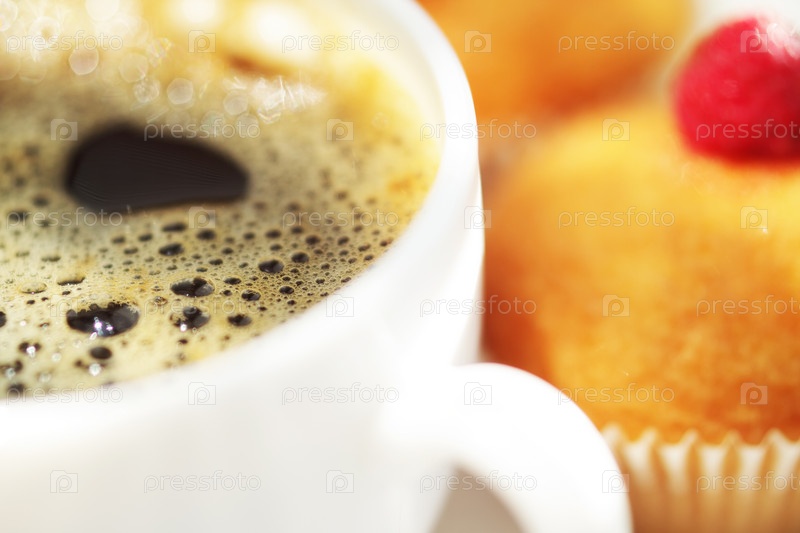 Чашка кофе и кексы с малиной