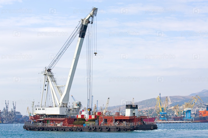 Плавучий подъемный кран в порту Новороссийска