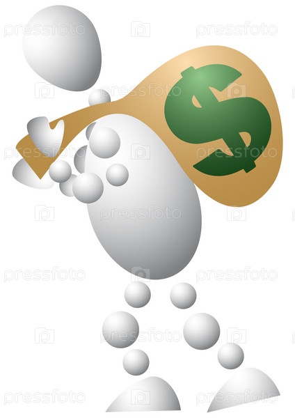 Человечек несет мешок с деньгами