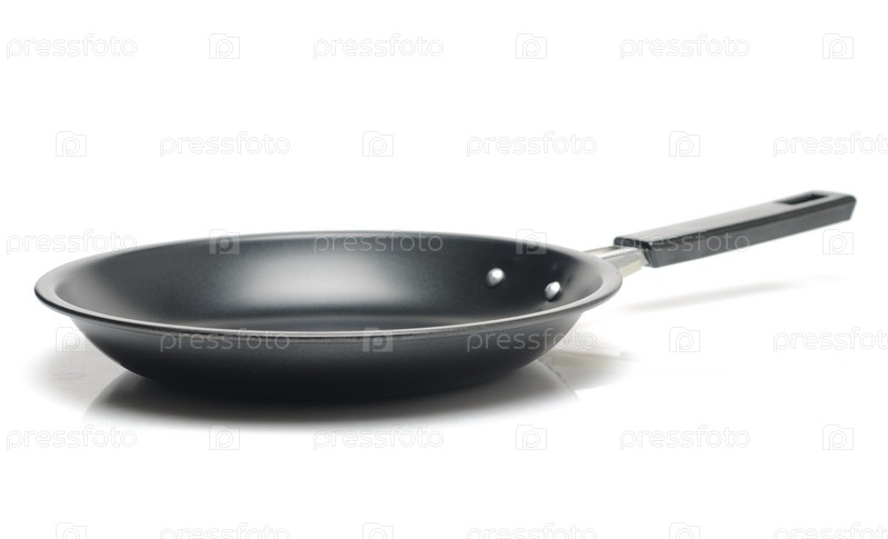 Черная сковородка на белом фоне