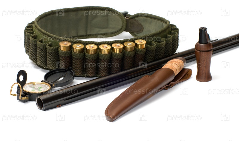 Экипировка охотника на белом фоне