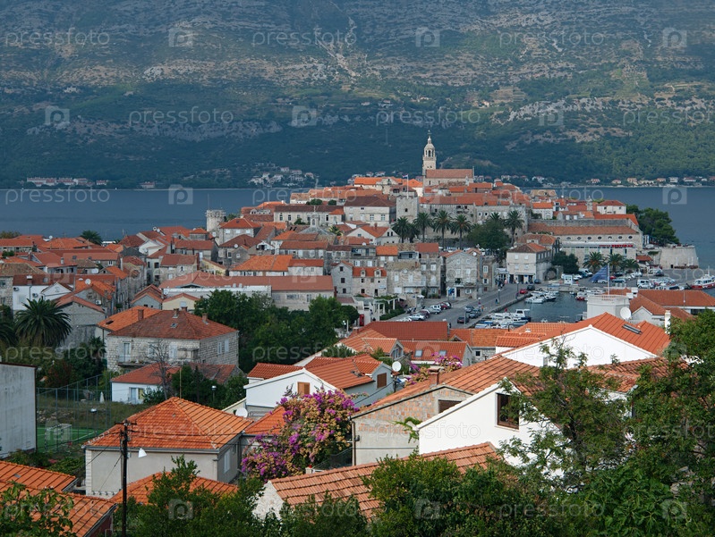 Вид сверху на древний город Корчула в Хорватии