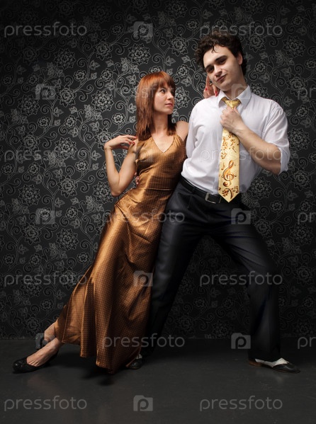 Пара танцоров на фоне черно-белых обоев