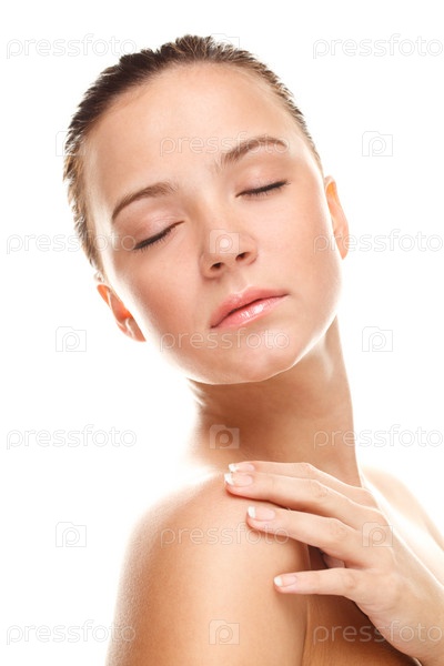 Портрет молодой девушки с чистой кожей, у которой закрыты глаза