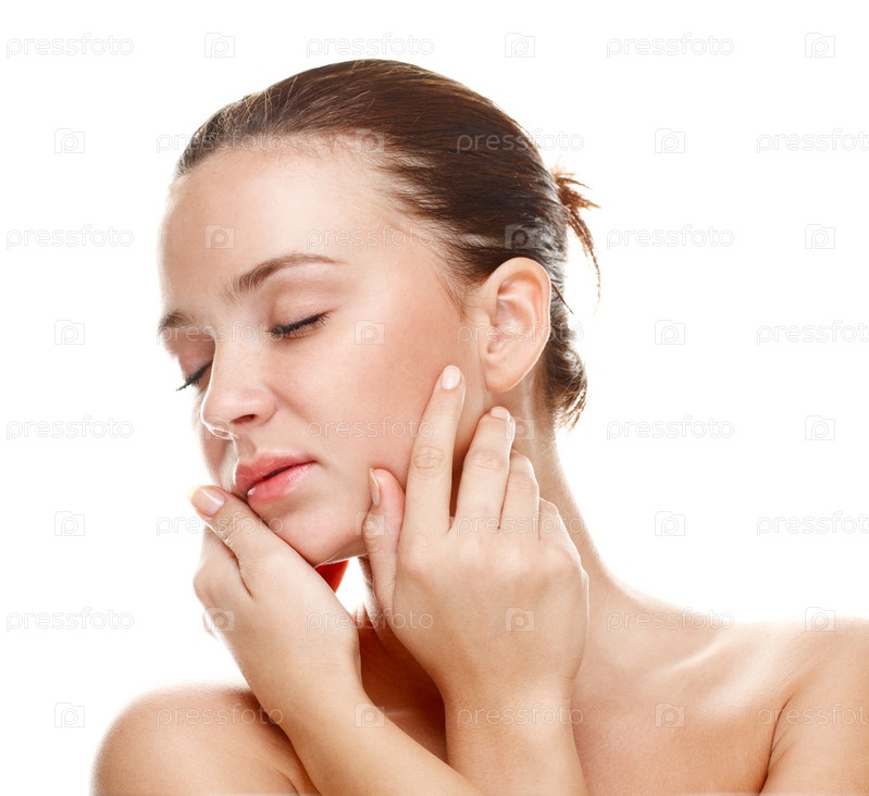 Портрет молодой девушки с чистой кожей, у которой закрыты глаза