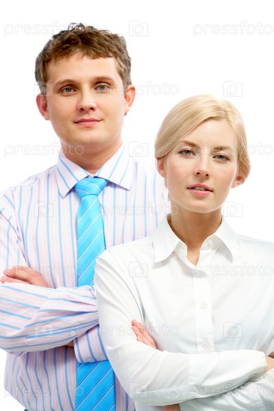 Деловые мужчина и женщина на белом фоне
