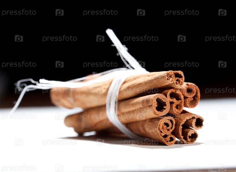 Связка палочек корицы на черно-белом фоне