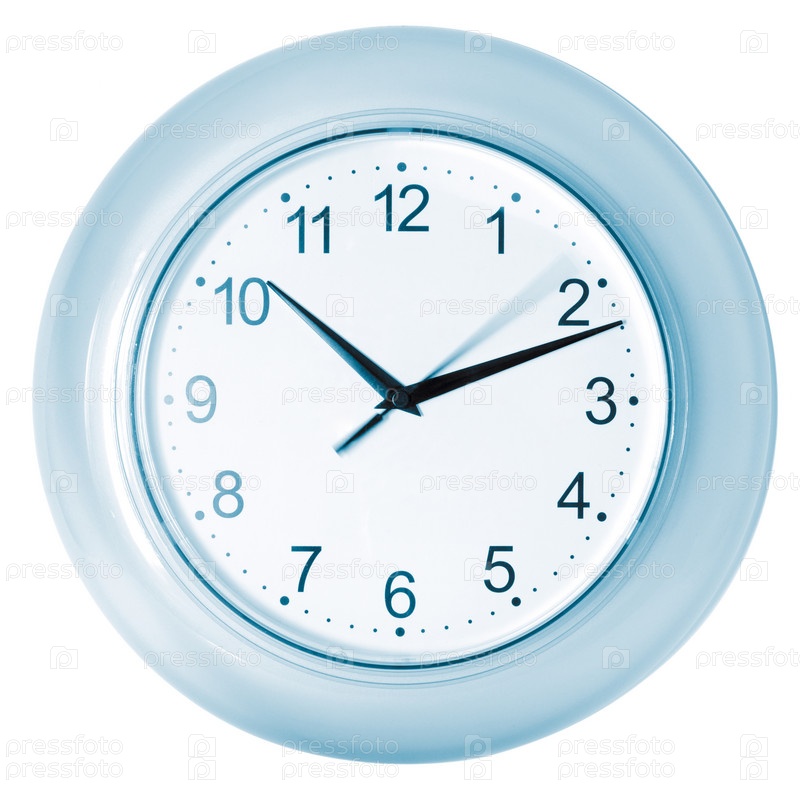 Круглые голубые настенные часы изолированы на белом