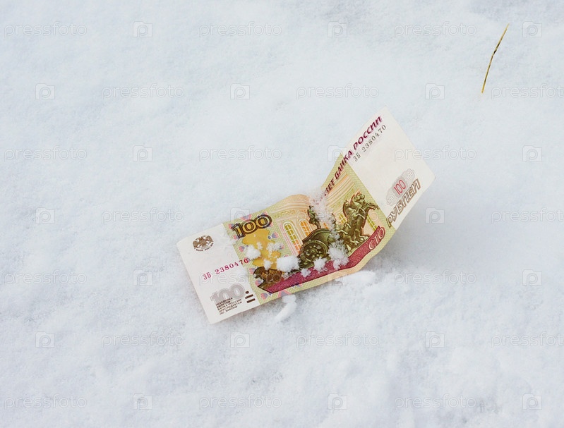 Денежная купюра на снегу