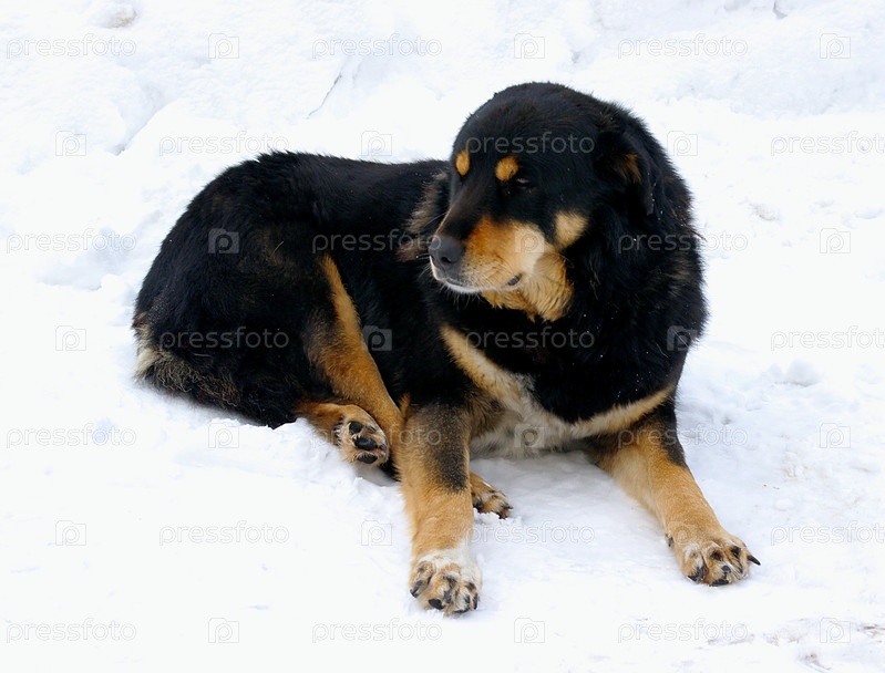 Собака, лежащая на снегу