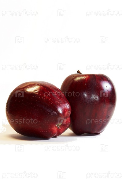 Два красных яблока на белом фоне