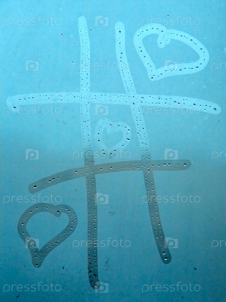 Сердца, нарисованные на запотевшем оконном стекле