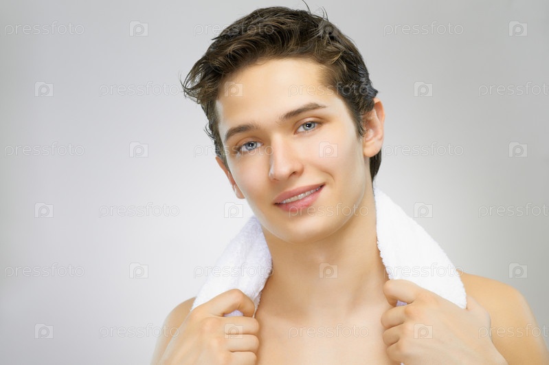 Портрет молодого мужчины на сером фоне
