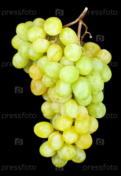 Гроздь зеленого винограда на черном фоне