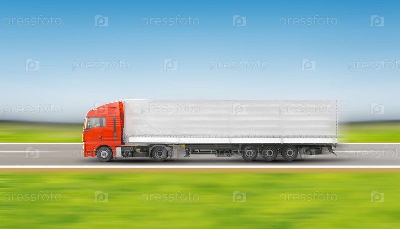Грузовик на трассе в движении