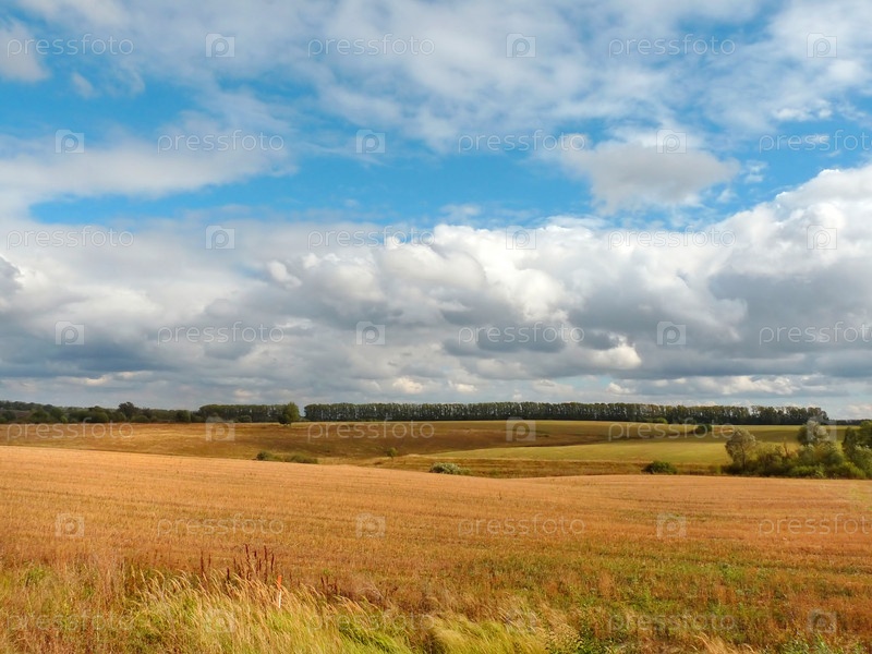 Осенний пейзаж. Пшеничные поля и прекрасное небо