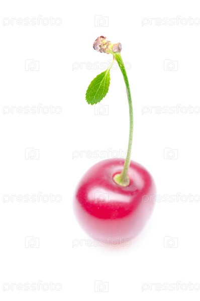 Вишня на белом фоне крупным планом