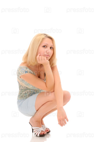 Молодая блондинка на белом фоне