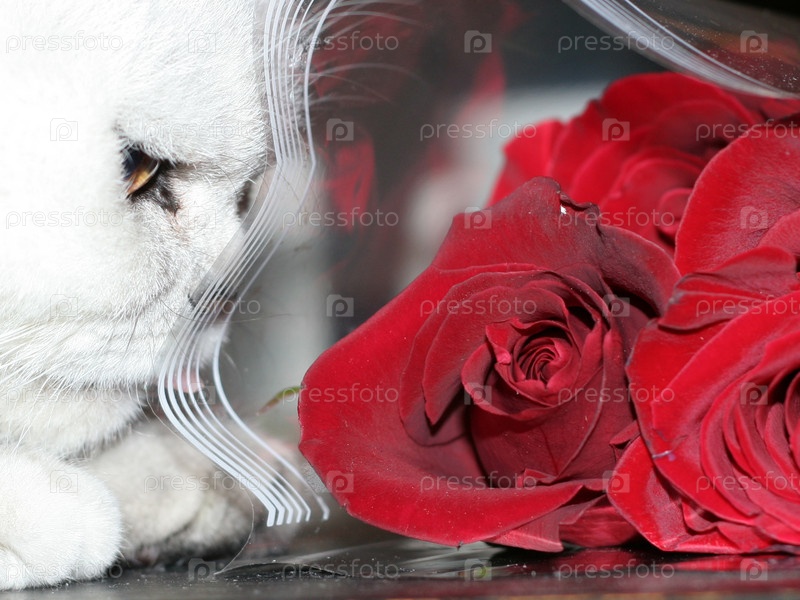 Розы и белая кошка