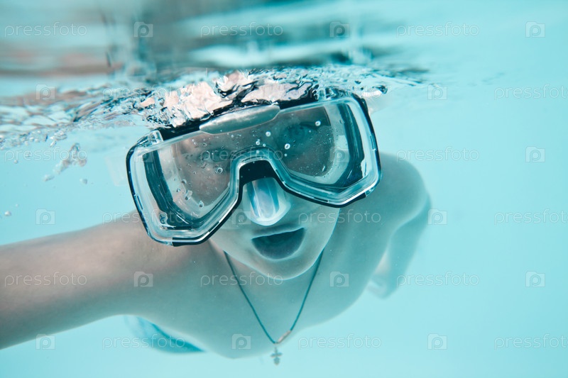 Мальчик в бассейне под водой