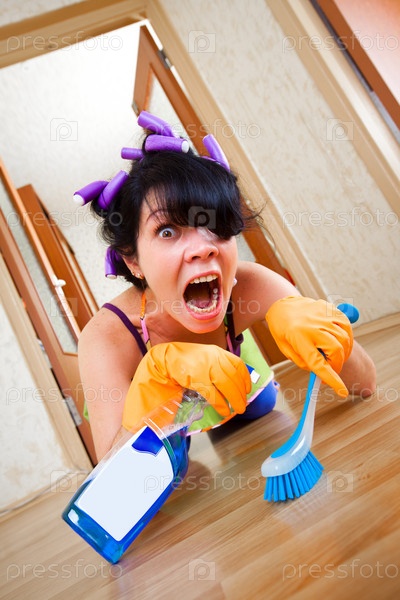 Домохозяйка моет пол