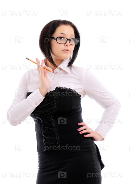 Молодая девушка в очках, одетая в деловом стиле