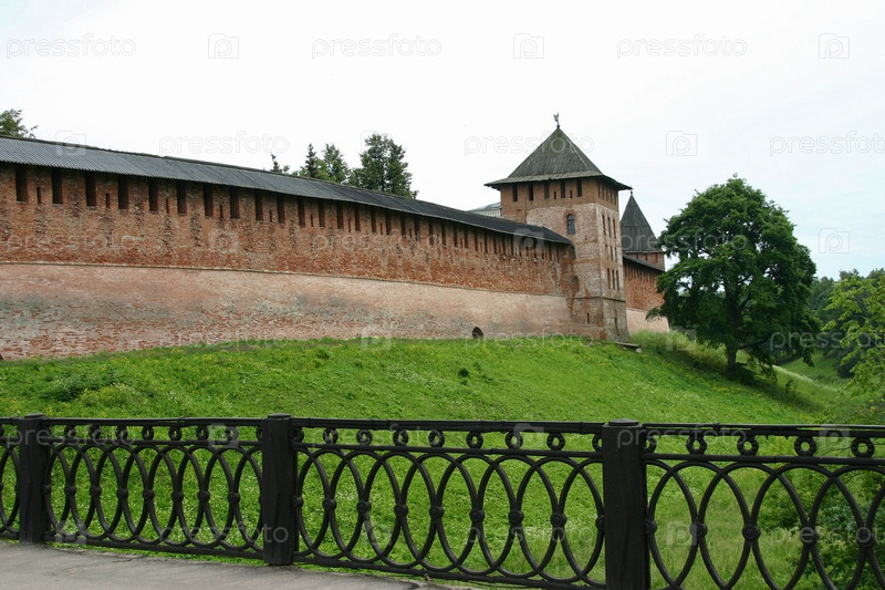 Россия. Великий Новгород. Городской пейзаж. Лето, крепостная стена
