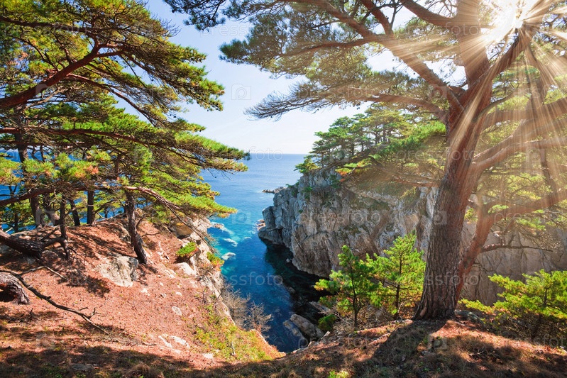 Деревья на скалах возле моря