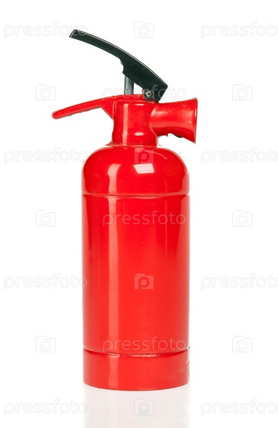 Красный огнетушитель на белом фоне