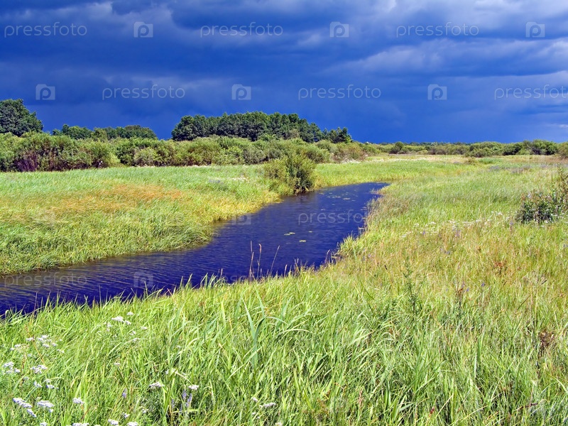 Речка в поле перед грозой