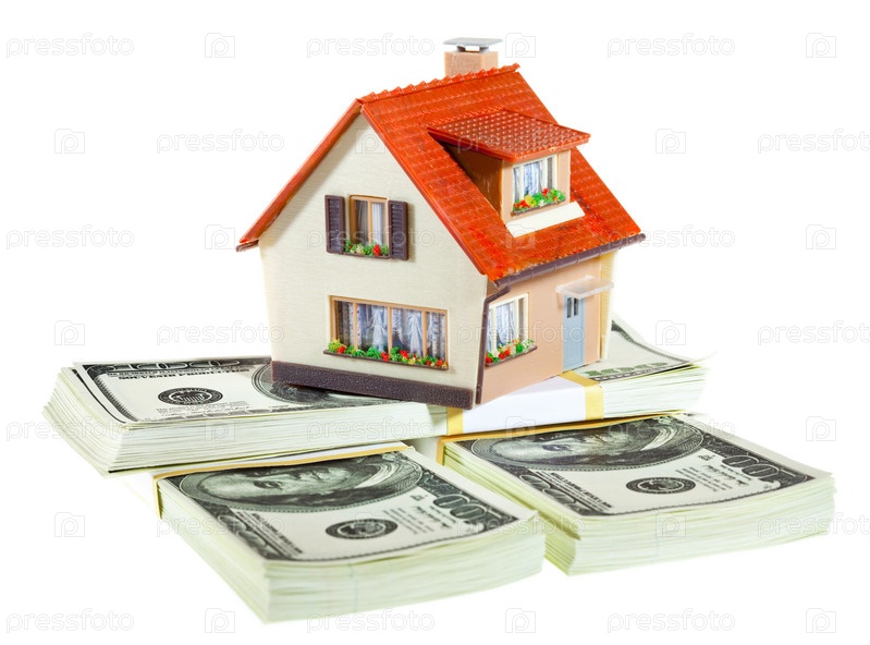 Дом на пачках долларов, белый фон