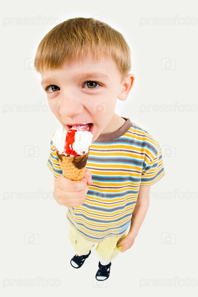 Фото молодого мальчика, ест мороженое