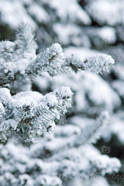 Заснеженные ветки пихтового дерева