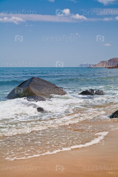 Морские волны разбиваются о прибрежные камни