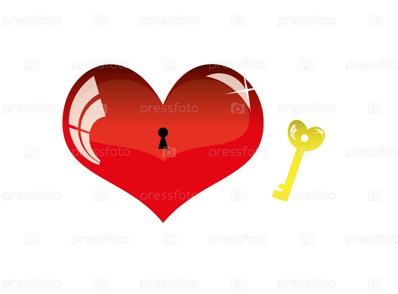 Красное сердце и ключ на белом фоне