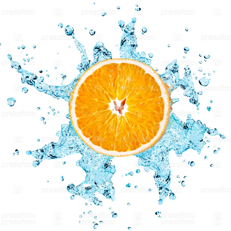 Апельсин в брызгах воды