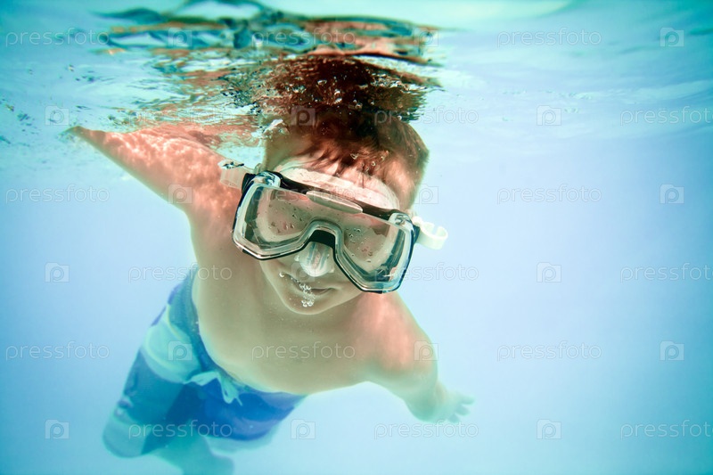Мальчик под водой в бассейне
