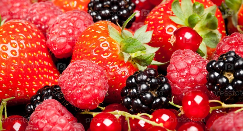 Ягоды: клубника, смородина, ежевика, малина