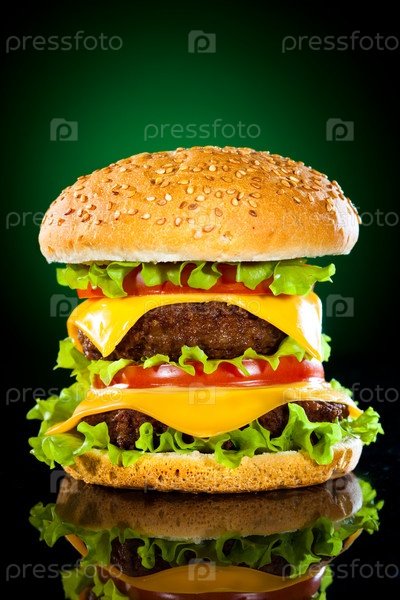Гамбургер на темно-зеленом фоне