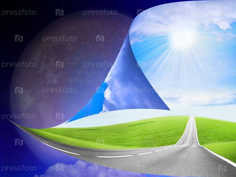 Трасса вдоль зеленого поля на фоне неба