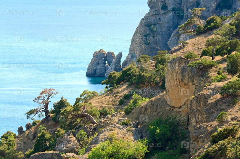 Скалистый берег, с растущими на нем кустарниками