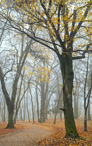 Осенний парк с падающими листьями